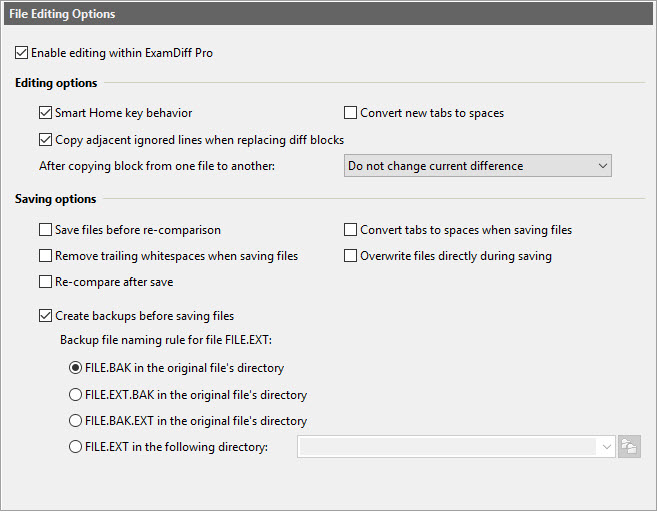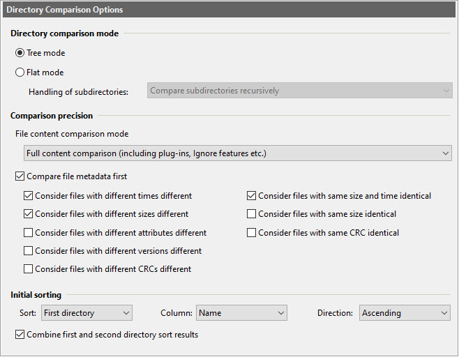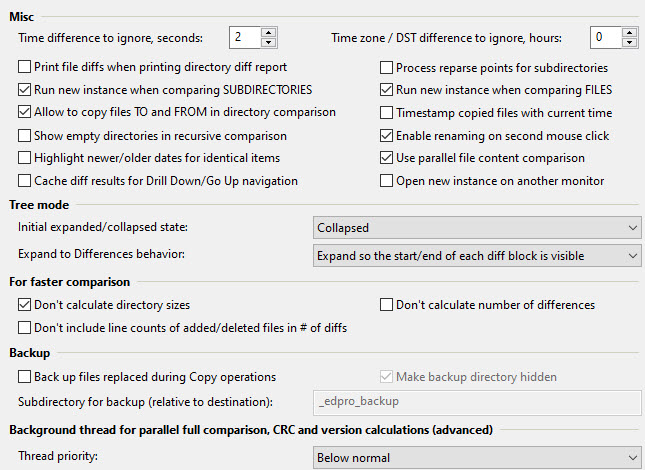 ExamDiff Pro gives you great control over how directory comparison is performed, and from this page you can choose from a number of options to make comparison faster or more accurate.