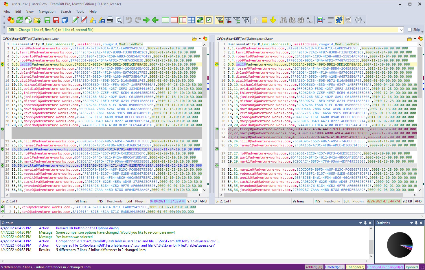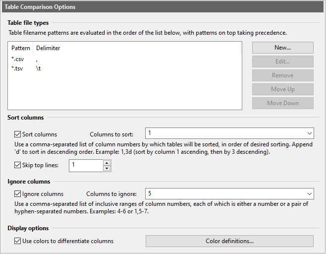 Table Comparison mode provides built-in functionality to sort and ignore columns and the ability to differentiate columns by color to better view tabular data.